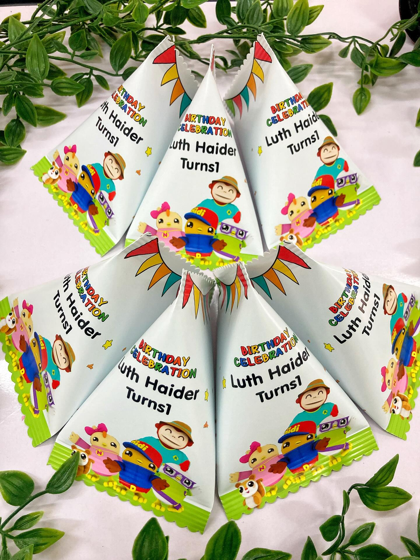 An empty custom design goodies bag with personalized wording (Triangle 10x15cm), a cute little pouch ready to fill with your own treats.