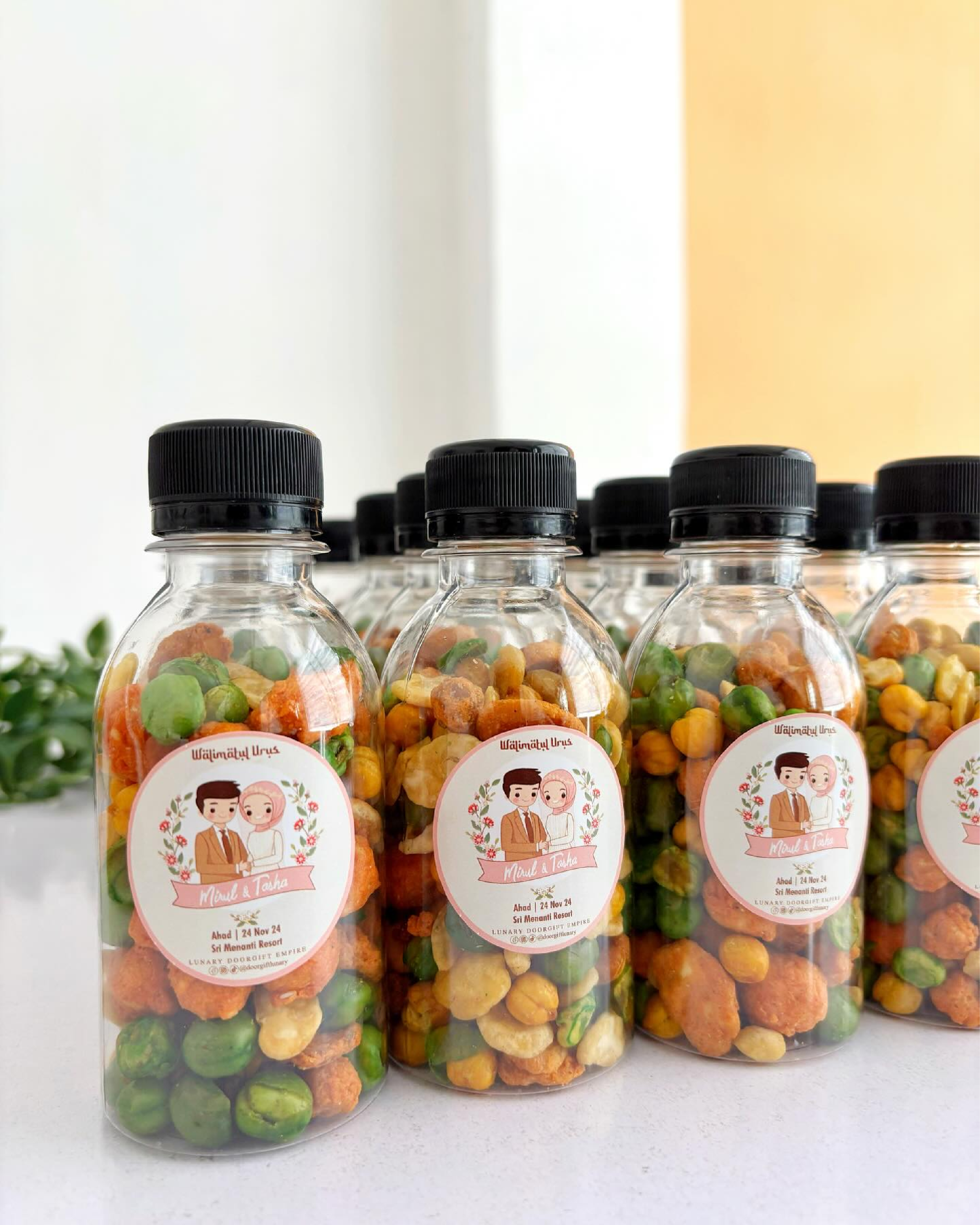 β100ml Transparent Bottle βCustom Design & Wording Sticker β70gram Mix Nuts
