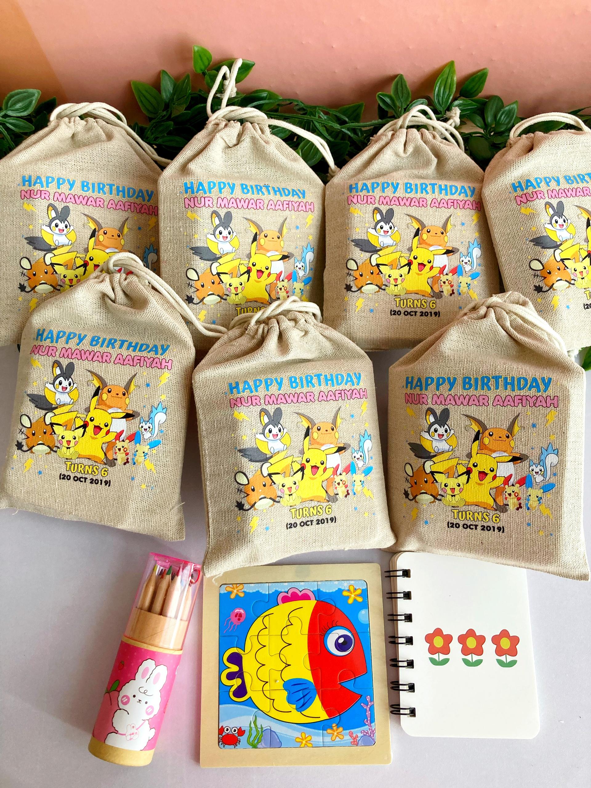 Mini color pencils, a puzzle and a mini notebook packed in a custom drawstring bag (12x17cm), a thoughtful set that keeps kids busy and learning.
